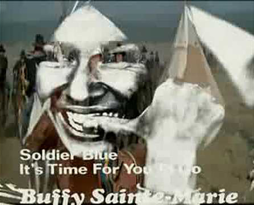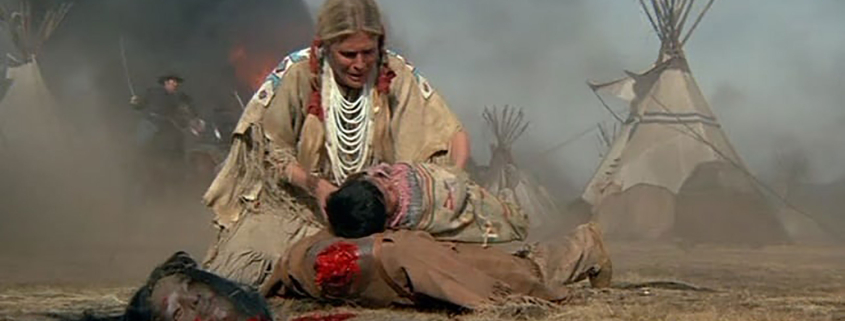Anche se le vicende storiche si confondevano (forse troppo ?) rischiando di sfumare, con quelle personali, con gli amori e le scontate vicissitudini – tragiche o comiche – dei protagonisti. Per quanto impegnata, rimaneva pur sempre “Società dello spettacolo”, della merce, dell’intrattenimento, del consumo… Con un malcelato filo di ammirazione-invidia per un sistema tanto esperto (e privo di scrupoli) da saper trarre profitti anche condannando i massacri del passato, comunque imputabili a quel sistema (da ragionarci sopra effettivamente). D’altra parte – soprattutto se li confrontiamo con l’andazzo attuale – rimangono testimonianza preziosa di come anche “un altro cinema era possibile”. Detto questo, ho potuto verificare che tra chi conosceva Soldato blu, la maggior parte era convinta che il massacro, orrendo ma veritiero, descritto nel film corrispondesse a quello che ha goduto di maggior notorietà, ossia al Wounded Knee.