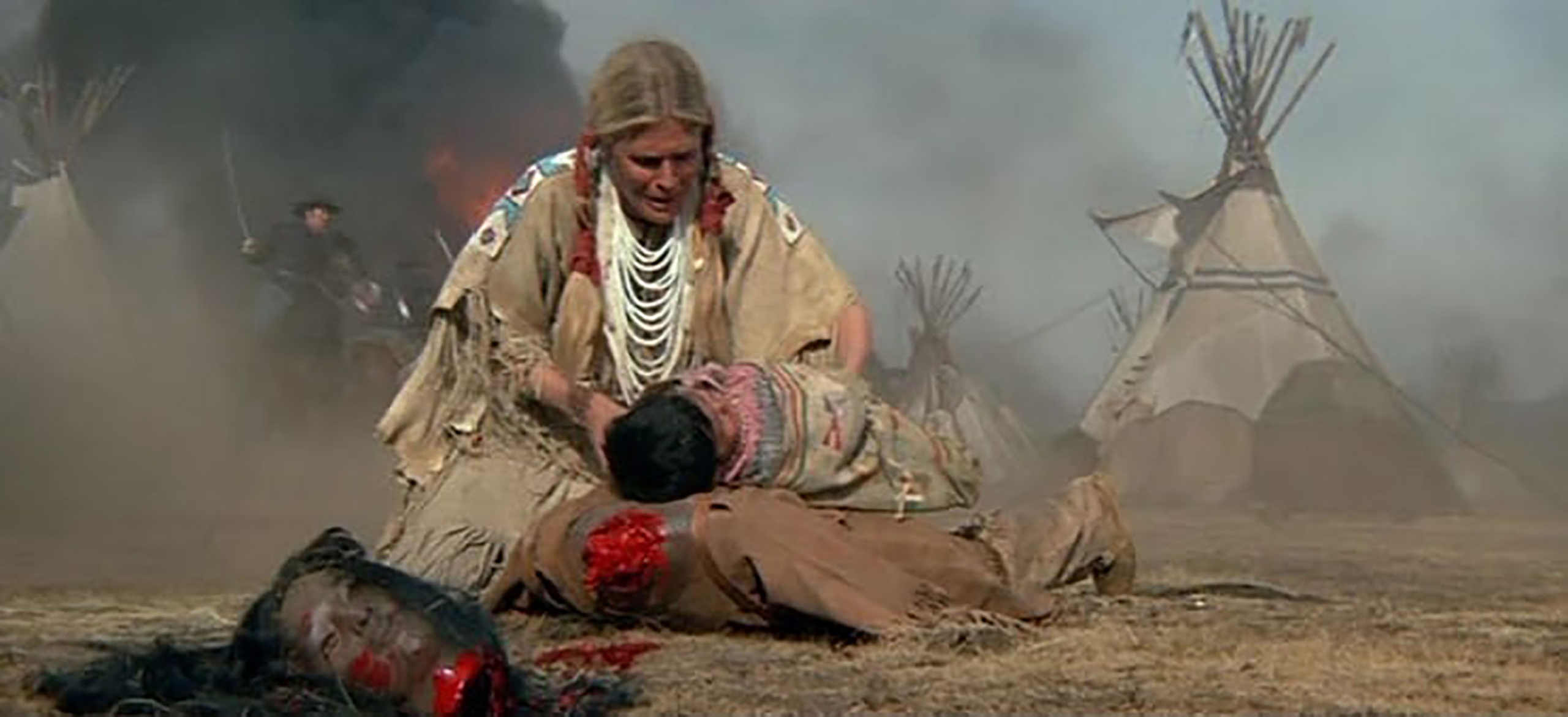 Dove Pentola Nera aveva effettivamente innalzato la bandiera a stelle e strisce (nel film la sorregge andando incontro ai soldati per poi scagliarla a terra quando questi sparano e verrà simbolicamente calpestata dai cavalli al galoppo) insieme a quella bianca sul suo tepee. E qui si erano radunati donne e bambini pensando di sfuggire alle fucilate delle Giacche Blu. In realtà una sorta di milizia (seicento uomini del reggimento del Colorado) guidata dal colonnello Chivington, un predicatore fallito che intendeva riciclarsi in politica («Maledetto sia chiunque simpatizza con gli indiani! Io sono venuto a uccidere gli indiani e credo sia giusto e onorevole usare qualsiasi mezzo Dio ci abbia messo a disposizione per uccidere gli indiani» – così si era espresso Chivington contro il capitano Silas Soule, che durante il massacro aveva proibito ai suoi uomini di aprire il fuoco, e i tenenti Joseph Cramer e James Connor che protestavano contro l’ordine del colonnello di attaccare il villaggio di Pentola Nera. Ritenendolo un “assassinio nel senso pieno della parola”). Tra l’altro, la maggior parte dei “volontari” si erano arruolati per combattere gli indiani solo per sfuggire alla leva obbligatoria che li avrebbe inviati contro i sudisti (il che era molto più pericoloso ovviamente). Per cui inventarsi “battaglie sanguinose” con gli Indiani “ostili” garantiva di restarsene sostanzialmente al sicuro dai terribili combattimenti della Guerra Civile.