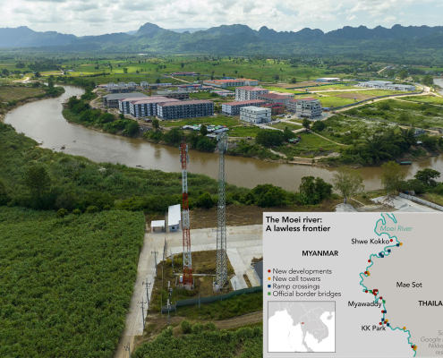 «Con le false credenziali della Belt and Road Initiative – messe in discussione dal precedente governo del Myanmar guidato da Aung San Suu Kyi e pubblicamente sconfessate dall’ambasciata cinese in Myanmar nel 2020 – la città si trova appena a nord di Mae Sot, in Thailandia. Secondo il materiale promozionale, la città avrà “parchi industriali scientifici e tecnologici, aree per il tempo libero e il turismo, aree per la cultura etnica, aree commerciali e logistiche e aree per l’agricoltura ecologica”. Ci sarà anche una struttura per “l’addestramento alle armi da fuoco”. Shwe Kokko è stato anche definito “la Silicon Valley del Myanmar” e una stazione chiave lungo la “Via della Seta marittima”» (NikkeiAsia), parte di un ponte terrestre tra l’Oceano Indiano che permette di aggirare i pericoli e i dazi della navigazione tra gli stretti del Mar Cinese Meridionale, avvalendosi di una ferrovia che unirà lo Yunnan al mar delle Andamane.