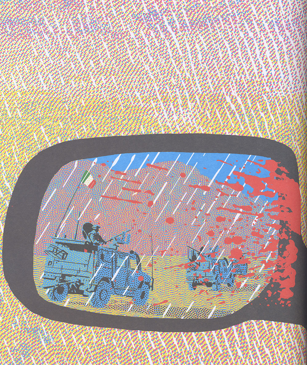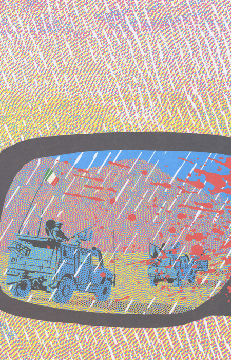 Il fascicolo si apre sul quartiere del Politecnico di Kabul dopo il ripristino della shari’a, ma la storia rievocata da Giuliano Battiston insieme al padre della vittima, a cui le illustrazioni pointilliste di Giacomo Nanni conferiscono cromatismi psichedelici, percorre il 3 maggio 2009 una strada vicino a Gozarah…