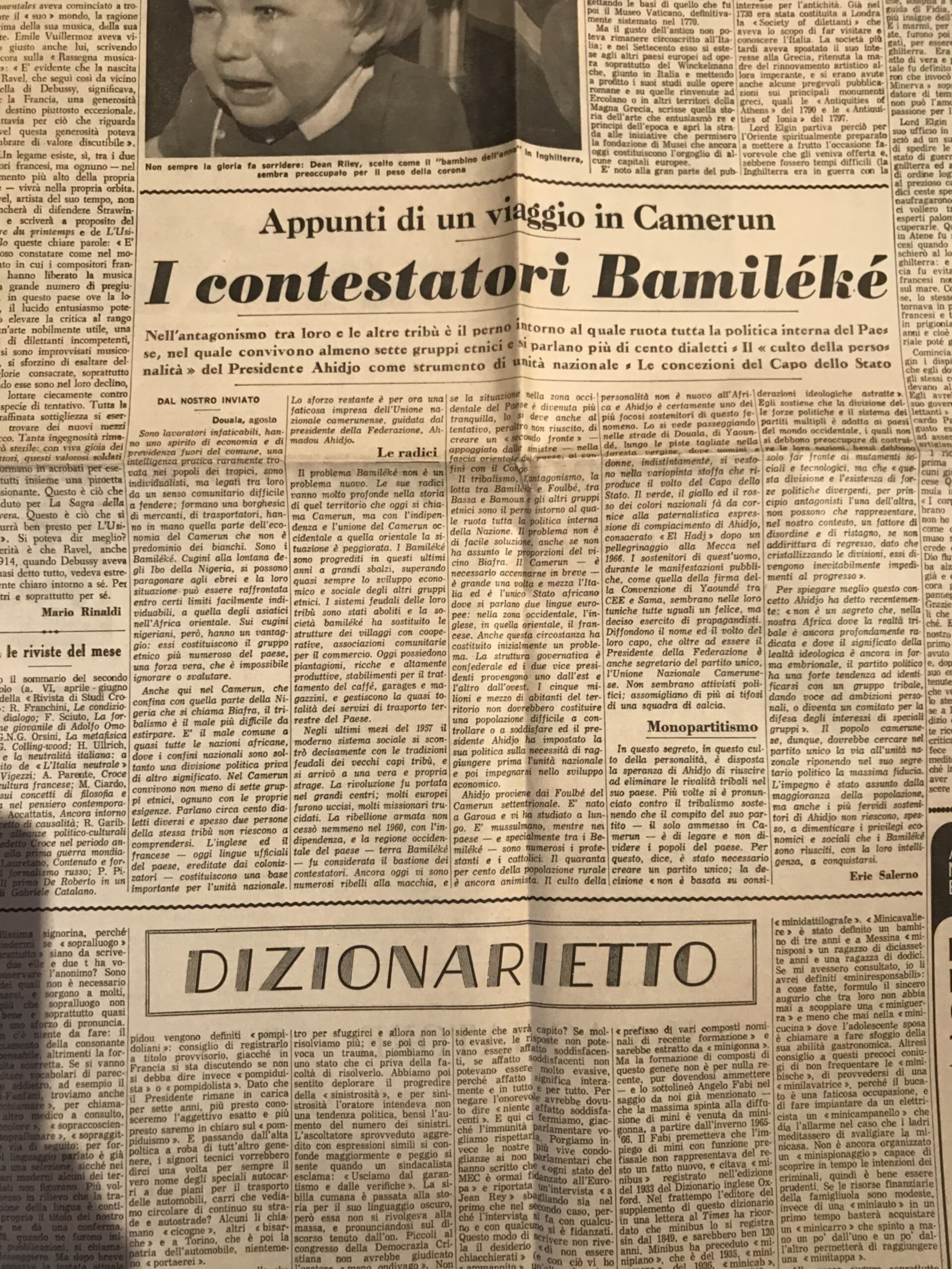 Un reportage di Eric Salerno dal Camerun, apparso su “Il Messaggero”, l’8 agosto 1969: rivalità tribali vs. unità nazionale