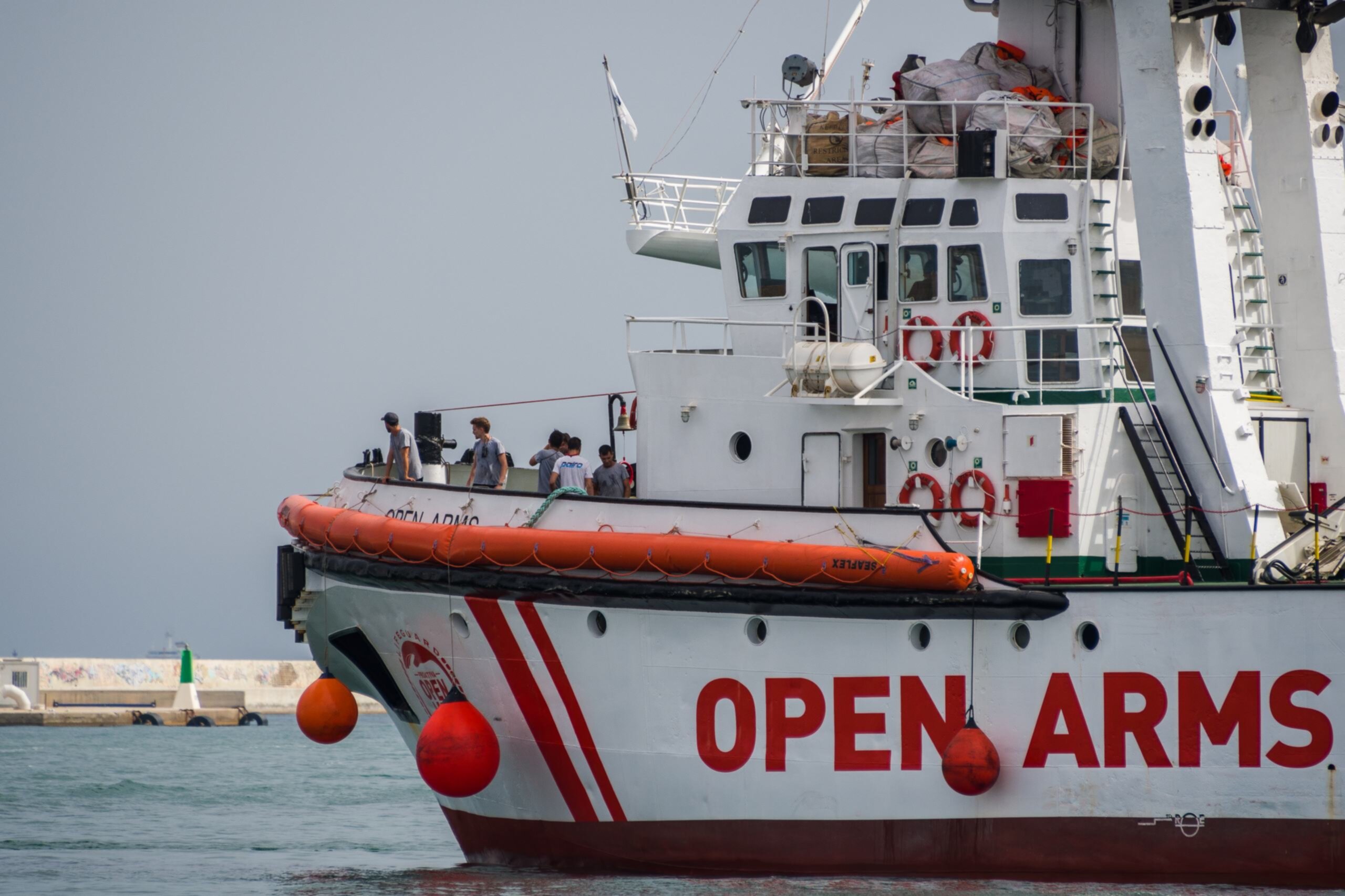 La Open Arms lascia il porto di Barcellona diretta in Libia (2018, foto Marco Pachiega / Shutterstock)