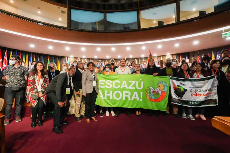 Ma i delegati del COICA sono andati oltre, con la richiesta di un posto riservato a un portavoce dei popoli indigeni. «Non c’è Accordo di Escazú senza i popoli indigeni», afferma Lolita Piyahuaje, vicepresidente della Confederazione delle Nazioni Indigene dell’Amazzonia Ecuadoriana (CONFENIAE) presentando la proposta, che prevede anche l’implementazione di un caucus, un’assemblea indigena nella COP.