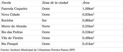 Parlando di Rio de Janeiro scopriamo (Tabella 2) che esistono favelas che addirittura superano il chilometro quadrato di estensione, come quella chiamata Fazenda Coqueiro.