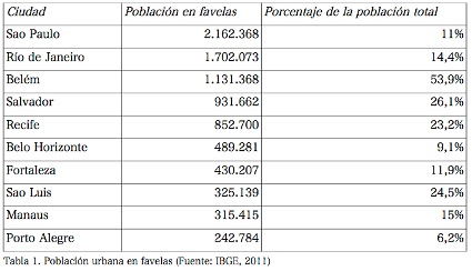 Dalla tabella 1 possiamo trarre delle considerazioni importanti. Vediamo per esempio che più del 14% della popolazione di Rio de Janeiro viveva nelle favelas ma che è São Paulo la città che concentrava più popolazione favelada. Le percentuali di São Paulo e Rio de Janeiro sono drammatiche ma sono molto basse rispetto ai dati di altre città brasiliane: eclatante era la situazione di Belém (stato di Pará) una città di 2,1 milioni di abitanti in cui il 54% della popolazione viveva nelle favelas.