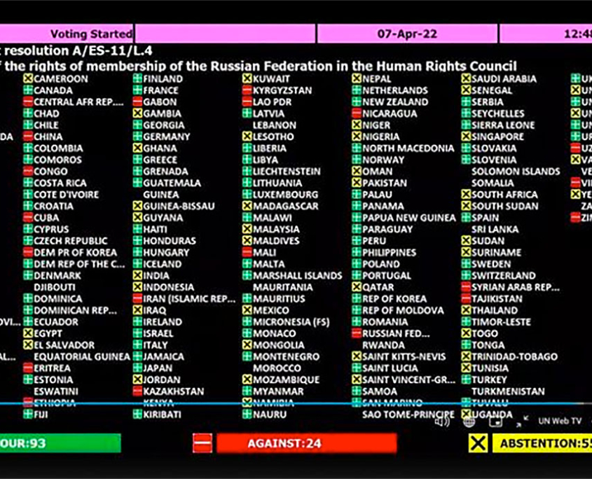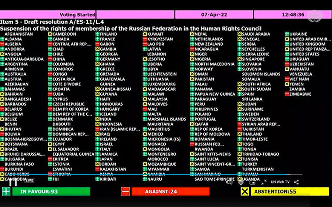 Il 7 di aprile, sempre all’interno dell’Assemblea Generale dell’Onu, è andato in scena il voto per estromettere la Russia dal consiglio dei diritti umani (decisione straordinaria applicata in passata solo nel marzo 2011 alla Libia). Anche questa volta la comunità internazionale si è trovata divisa, ancora più divisa del voto del 2 marzo, chiaro segnale che la macchina diplomatica del Cremlino è riuscita a ampliare la sua sfera di influenza. Sebbene infatti la votazione abbia ufficialmente comportato la sospensione della Russia dal consiglio dei diritti umani dell’Onu, questa volta i voti a favore sono stati “solo” 93 (contro i 141 di marzo), 24 contrari e 58 astensioni: da notare che ben 18 stati non hanno votato tra cui ancora il Venezuela e in questa occasione anche Bolivia, Cuba, Nicaragua e Suriname, che si erano astenute il 2 marzo, hanno invece votato contro questa risoluzione mentre il Salvador ha confermato la sua astensione. Tra gli astenuti fano però il loro ingresso il Belize, Trinidad e Tobago ma soprattutto il Brasile di Bolsonaro e il Messico di Andrés Manuel Lopéz Obrador. Questione geopolitica non di poco conto se si considera che questi due giganti latinoamericani sono la prima (Brasile) e la seconda (Messico), economia del subcontinente.