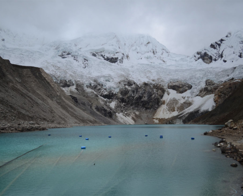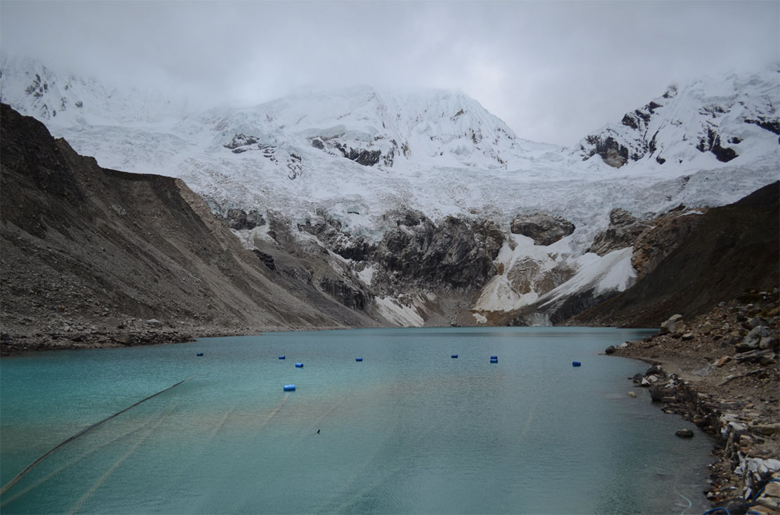 Lake Palcacocha in 2014. Siphons were installed in the glacial lake to lower the water level. Photo: Cooperación Suiza COSUDE/ via Flickr CC