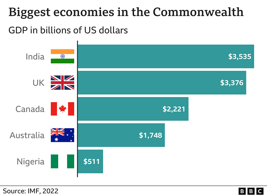Il Commonwealth è un’organizzazione che conta 56 nazioni per un totale di 2,5 miliardi di abitanti, con un Prodotto interno lordo che si prevede salirà a 19,5 trilioni di dollari nei prossimi cinque anni.