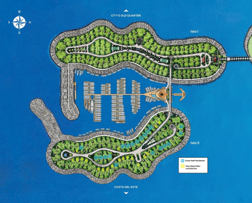 Si tratta di uno dei progetti più ambizioni realizzati nella regione negli ultimi anni e consiste nella costruzione di due isole artificiali collegata alla costa (nella zona di Punta Pacifico) per mezzo di un ponte. Sul sito della compagnia che promuove la vendita degli esclusivi appartamenti di questo enclave di ricchi creata artificialmente fuori dalla città, letteralmente in mezzo all’oceano, troviamo la frase di marketing: trasforma il tuo modo di vivere la città. Come se non fosse sufficientemente chiaro, in mezzo alla promozione per la vendita delle unità ancora in costruzione, ai possibili acquirenti in merito al piccolo porto privato, si specifica quanto segue: