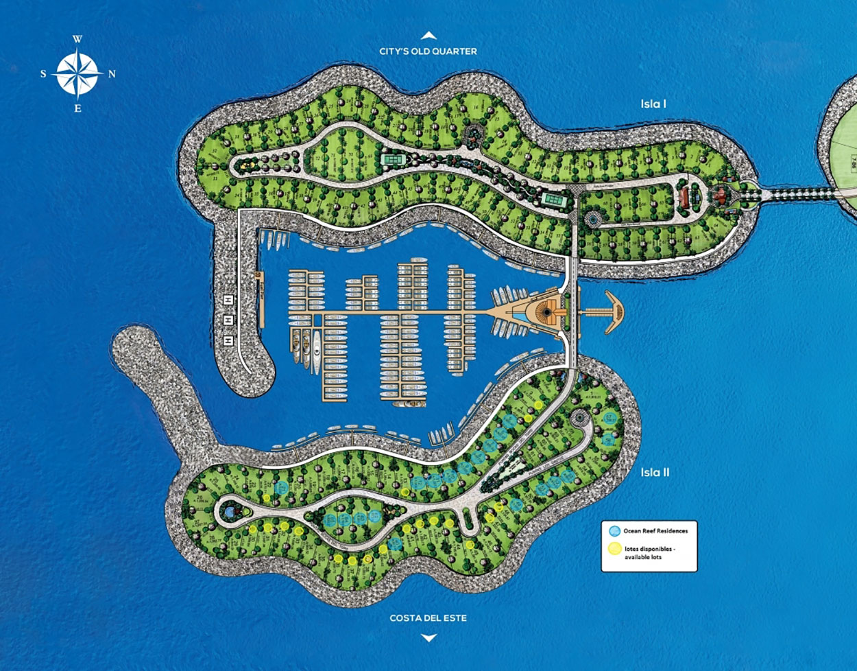 Ocean Reef Islands è composta da due isole (Isola I e Isola II) di 103.251 m² e 87.552,95 metri quadrati unite da un ponte. Una comunità residenziale privata che conta con un eliporto, uno yacht club, e che è situata nel centro di Panama City pero senza doversi “mischiare” con il resto della città (e soprattutto dei cittadini/e).